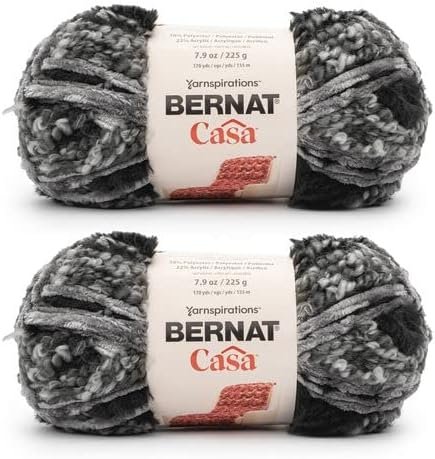 Bernat Casa in Gray Shade is a luxurious home decor yarn designed for effortless crafting. This super bulky yarn blends the textures of Bernat Blanket and Bernat Velvet, enhanced by the softness of faux fur and an additional unique texture. This combination allows crafters to create a rich, multi-textured look without the need for changing yarn balls or weaving in ends.