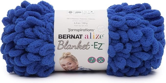 Introducing Bernat Alize Blanket-EZ Yarn in a vibrant bright blue. This innovative yarn is designed for easy crafting, featuring preformed loops that eliminate the need for needles or hooks. With Blanket-EZ, users can create cozy blankets and other projects faster and with less hassle than traditional knitting methods.